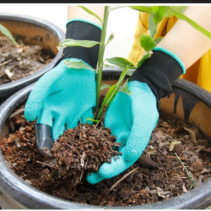 指先に丈夫な爪が付いた画期的なガーデニング用手袋です。