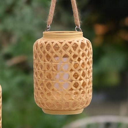 美しい竹編み風のデザインが魅力的な太陽光発電式の提灯です。