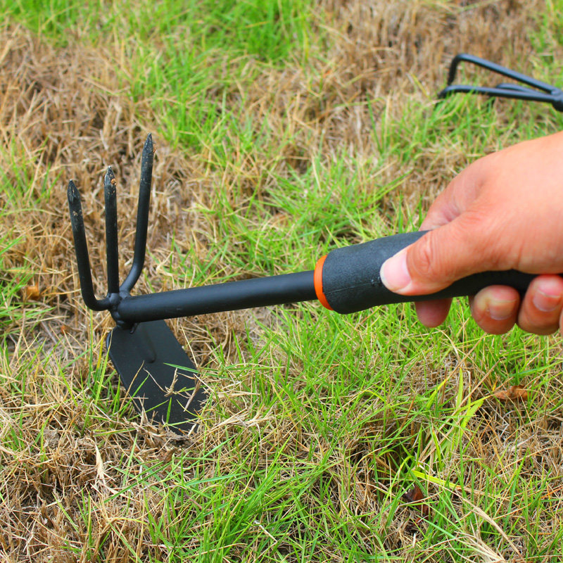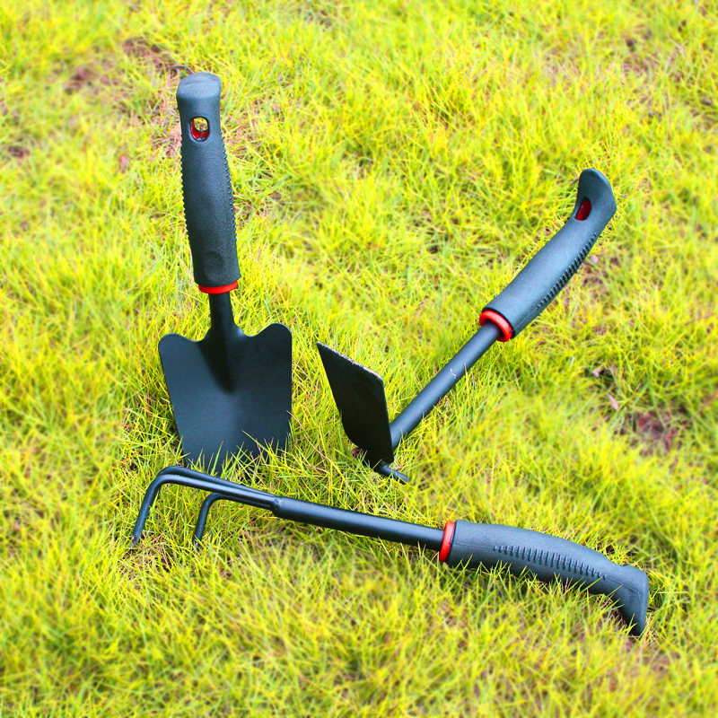 スコップは土掘りや植え替えに、移植ごては細かな作業に、熊手は土ならしや除草に最適です。